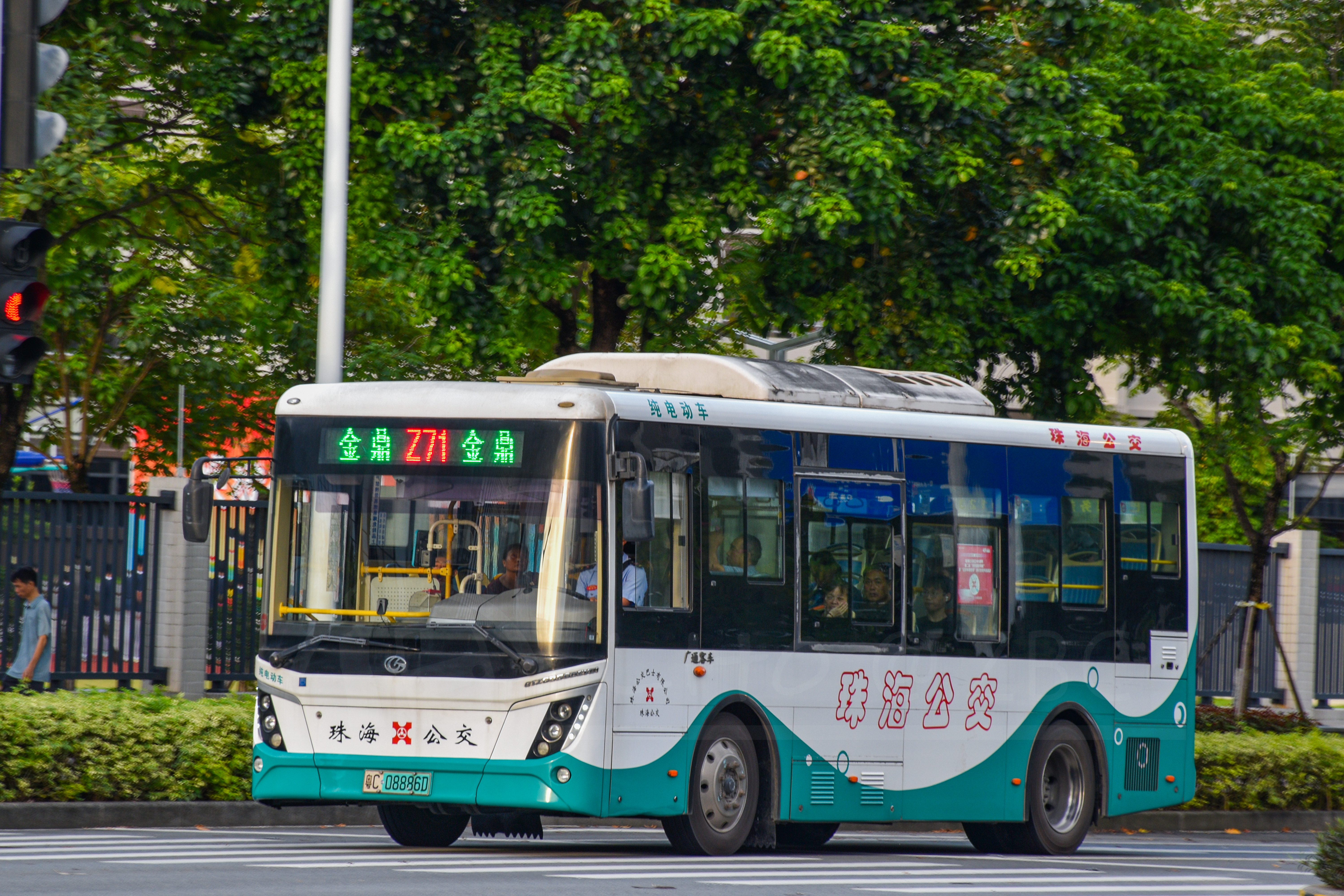 - 本线路走向为金鼎 ↺ 城轨珠海北站,全线配车3台,车型为广通GTQ6111BEVBT1,广通GTQ6111BEVBT20,单程运行时间约为15分钟。