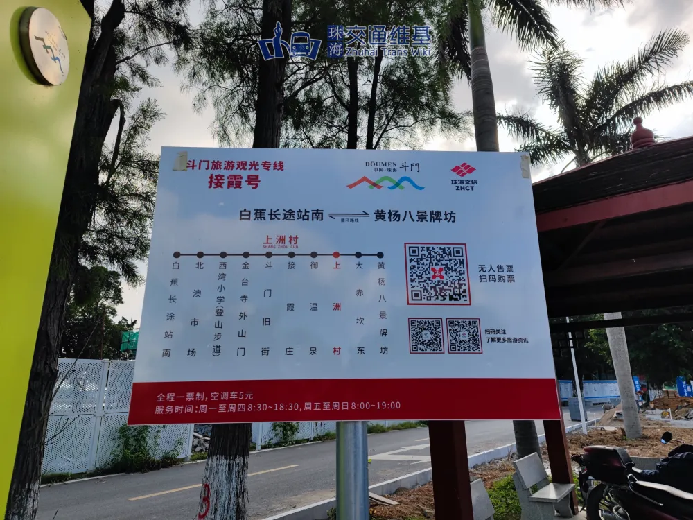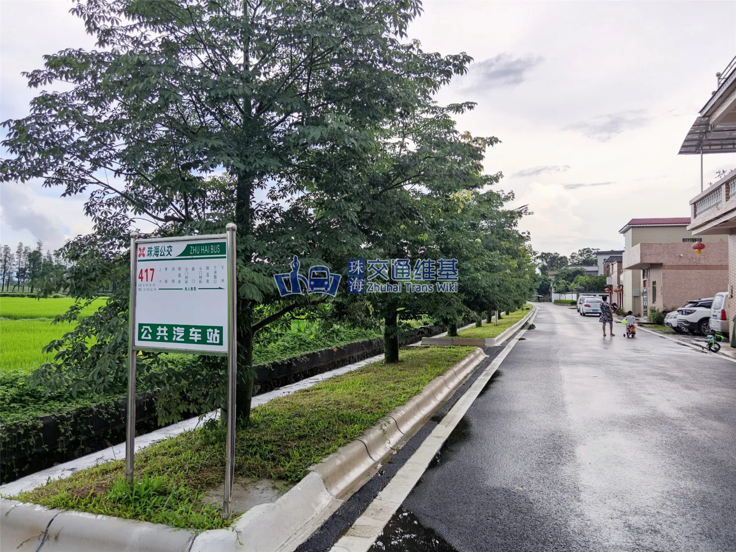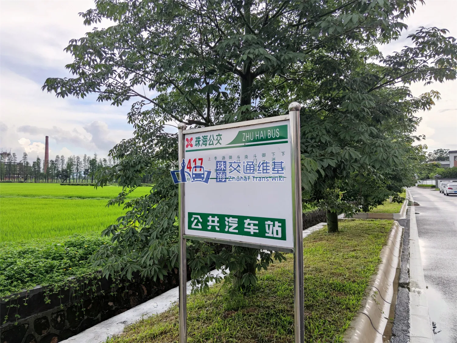 斗门旅游观光专线“接霞号”在上洲村设有站点,但站牌设在上洲牌坊侧,与417路不共站。