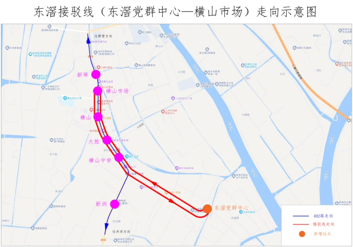 | 东滘党群中心-横山市场接驳线线路图(转自珠海公交巴士官方微博) |