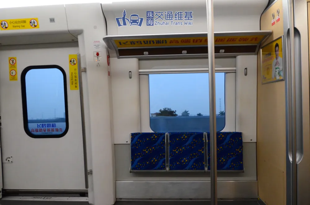 - 由于珠海市区段有多个小半径弯道,为平衡两侧轮对磨损,在实际运用中会经常进行反编组操作(由01车朝向珠海调整为00车朝向珠海)。反编组运行时,各车车厢号均以贴纸表示。如本应为8号车厢的00车粘贴1号车厢的贴纸,以此类推。