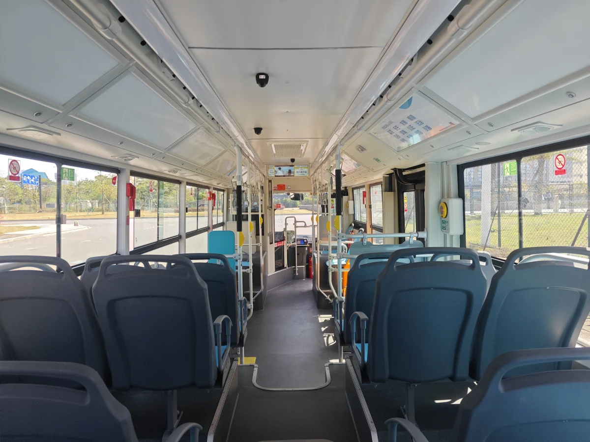 - 本车型是珠海首款10.7米的低入口公交车,后门处设置无障碍踏板,车内设有轮椅专用位。