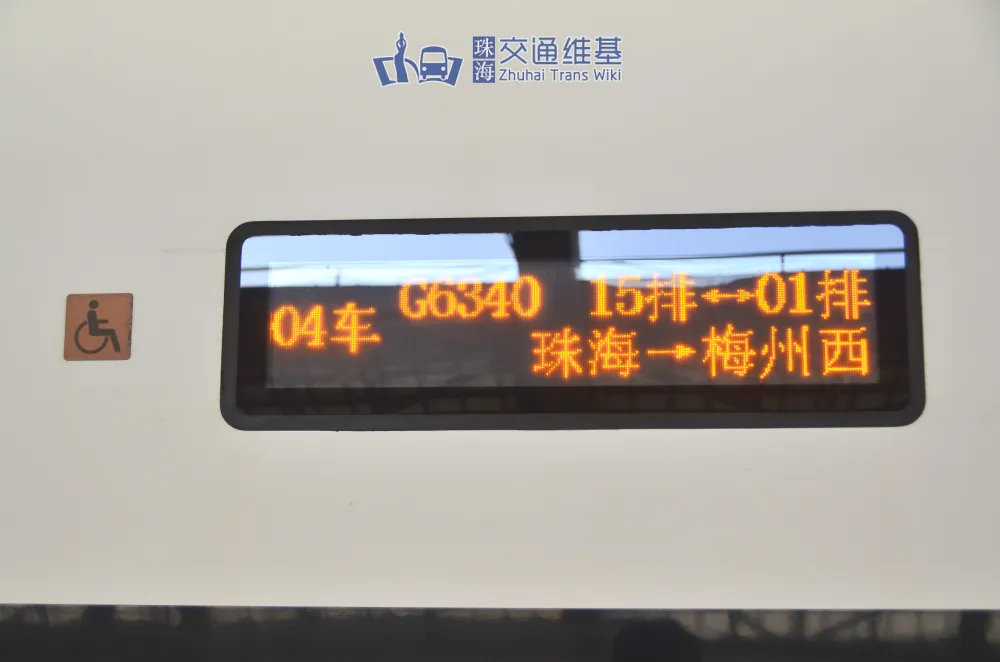| | 目前,本车型有一定概率担当郑州东-珠海G543次列车、珠海-广州南D7134次列车及梅州西-珠海G6338/39/40/37次列车。 |