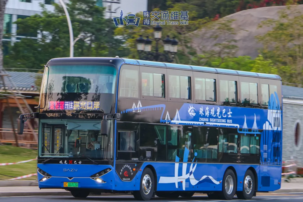 - 第二批次涂装相较于第一批次涂装,仅保留了珠海相关元素,即珠海城市形象LOGO、日月贝及港珠澳大桥。车身上的中英文标识也更换为“珠海观光巴士”。